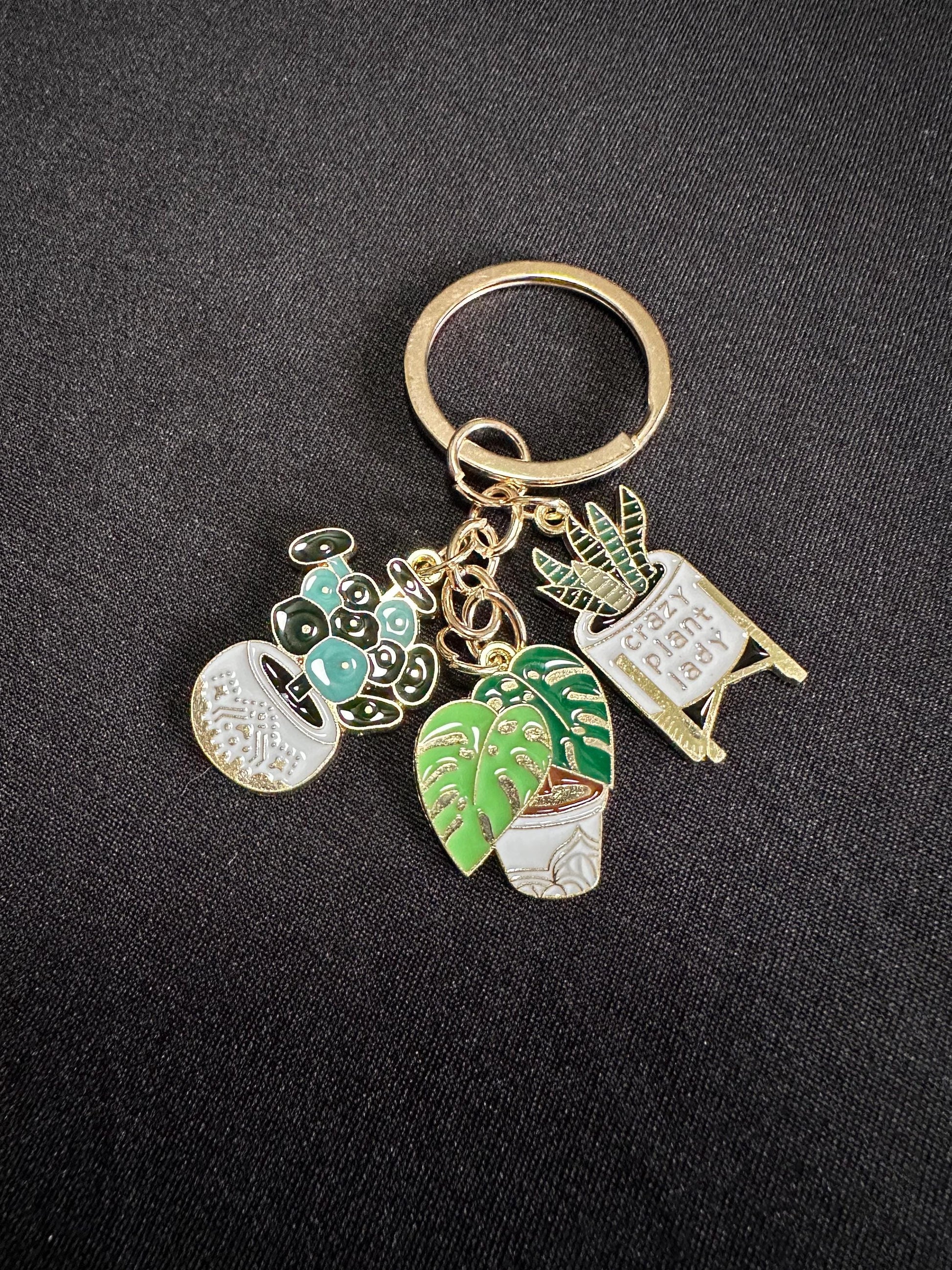 Meet our delightful Crazy Plant Lady Keychain, a must-have accessory for plant enthusiasts and trendsetters alike! This charming keychain features a playful collection of enamel charms, including a vibrant green monstera leaf, a quirky cactus in a decorative pot, and a “Crazy Plant Lady” sign perched on a miniature stand. Crafted with intricate details and finished with a sturdy gold-tone keyring, this keychain combines durability with a whimsical touch. Perfect for adding a pop of personality to your keys or bag, it’s an ideal gift for any green-thumbed friend or a fun treat for yourself. Measuring approximately 2.5 inches in length, this lightweight and eye-catching keychain is sure to bring a smile wherever you go!