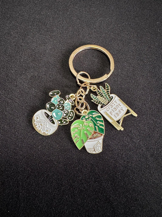 Gold Tone Metal “Crazy Plant Lady” Keychain